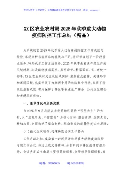 / XX区农业农村局2025年秋季重大动物疫病防控工作总结(精品)