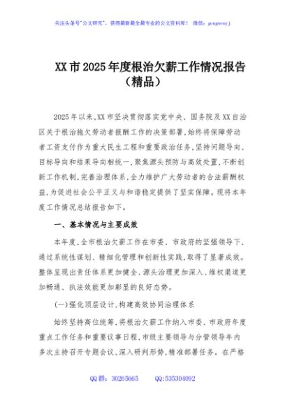 / XX市2025年度根治欠薪工作情况报告(精品)