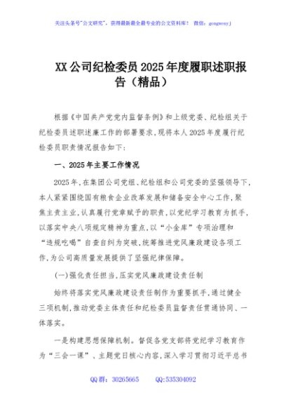 / XX公司纪检委员2025年度履职述职报告(精品)