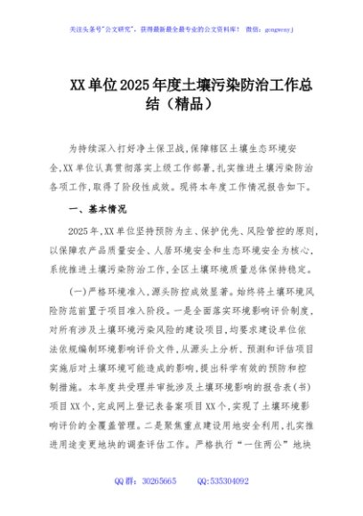 / XX单位2025年度土壤污染防治工作总结(精品)