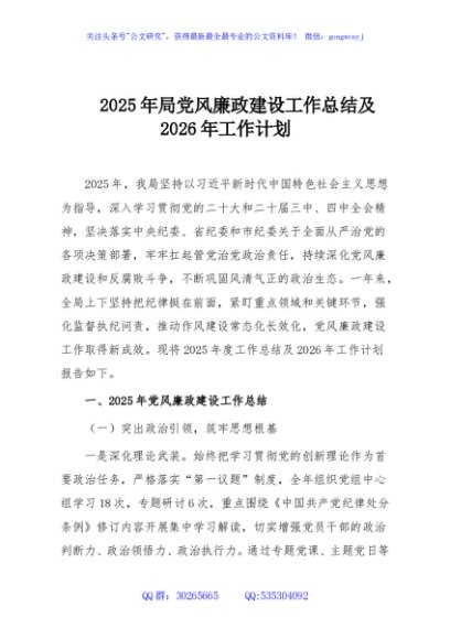/ 2025年局党风廉政建设工作总结及2026年工作计划