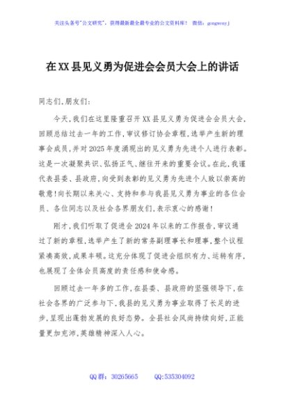 / 在XX县见义勇为促进会会员大会上的讲话