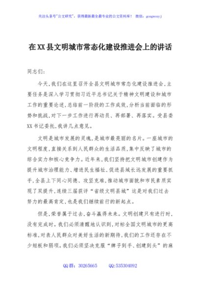 / 在XX县文明城市常态化建设推进会上的讲话