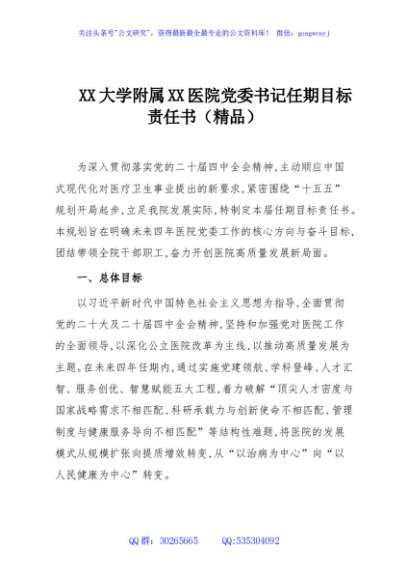 / XX大学附属XX医院党委书记任期目标责任书(精品)