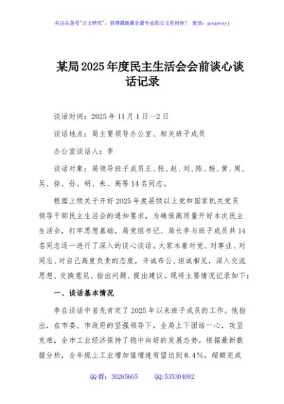 / 某局2025年度民主生活会会前谈心谈话记录
