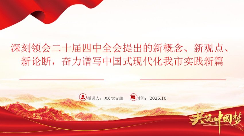/ 党课PPT:深刻领会二十届四中全会提出的新概念、新观点、新论断,奋力谱写中国式现代化我市实践新篇