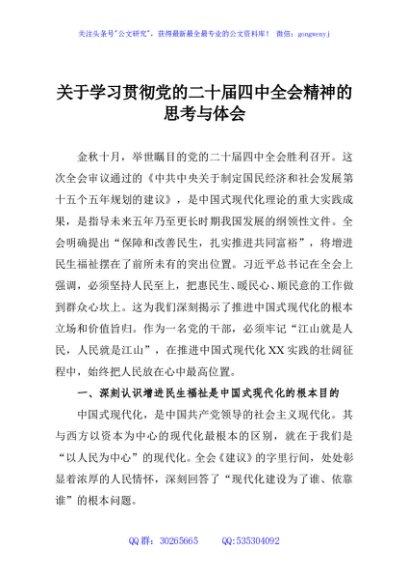 / 关于学习贯彻党的二十届四中全会精神的思考与体会
