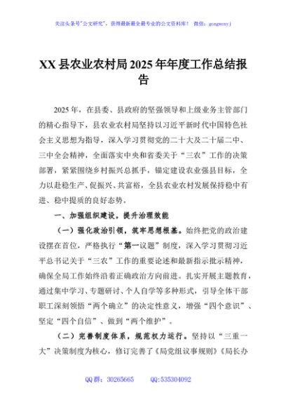/ XX县农业农村局2025年年度工作总结报告