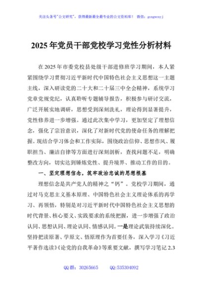 / 2025年党员干部党校学习党性分析材料