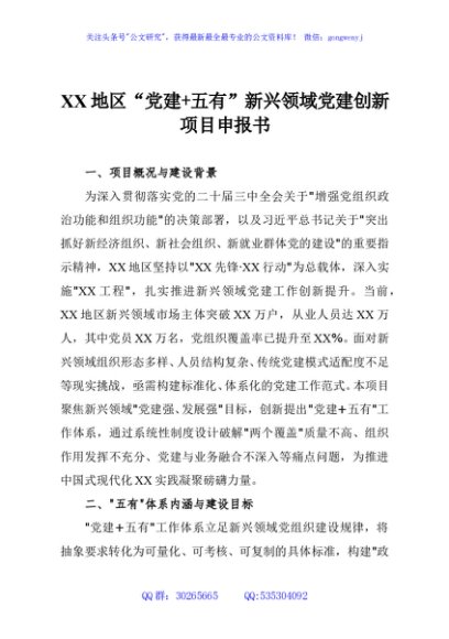 / XX地区“党建+五有”新兴领域党建创新项目申报书