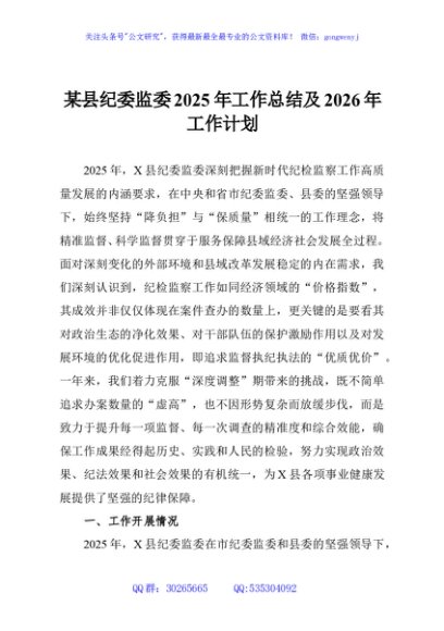 / 某县纪委监委2025年工作总结及2026年工作计划