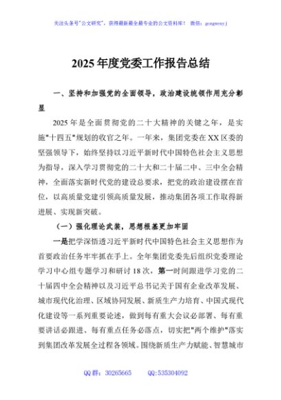 / 2025年度党委工作报告总结