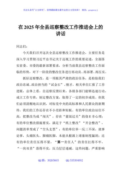 / 在2025年全县巡察整改工作推进会上的讲话