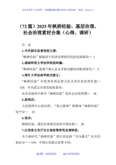 / (72篇)2025年枫桥经验、基层治理、社会治理素材合集(心得、调研)