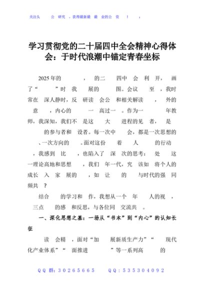 / 学习贯彻党的二十届四中全会精神心得体会:于时代浪潮中锚定青春坐标