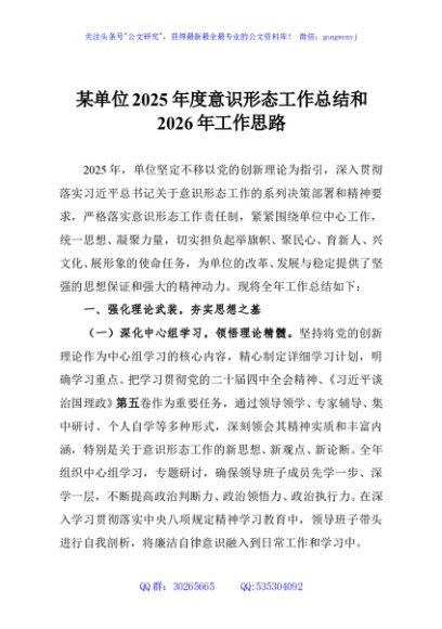 / 某单位2025年度意识形态工作总结和2026年工作思路