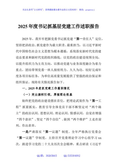 / 2025年度书记抓基层党建工作述职报告