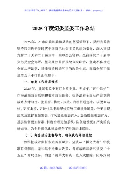 / 2025年度纪委监委工作总结