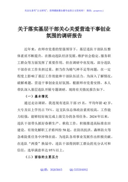 关于落实基层干部关心关爱营造干事创业氛围的调研报告