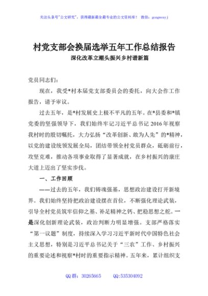 / 村党支部会换届选举五年工作总结报告