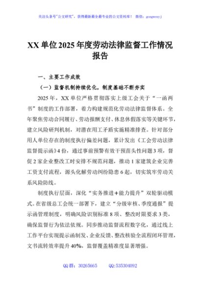 / XX单位2025年度劳动法律监督工作情况报告