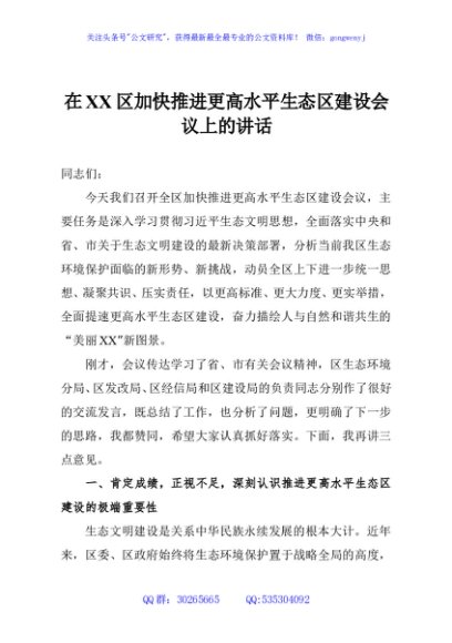 / 在XX区加快推进更高水平生态区建设会议上的讲话