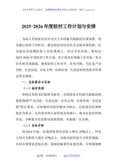 / 2025-2026年度驻村工作计划与安排