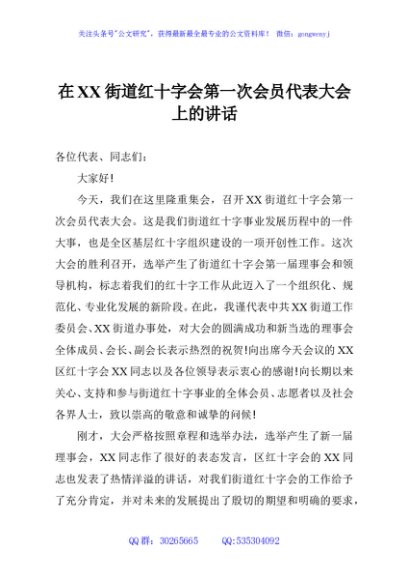 / 在XX街道红十字会第一次会员代表大会上的讲话