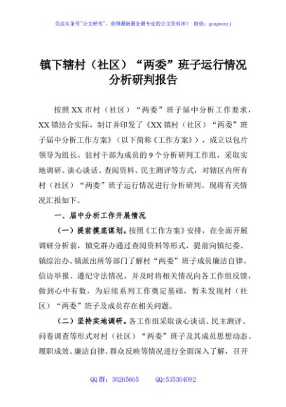 / 镇下辖村(社区)“两委”班子运行情况分析研判报告