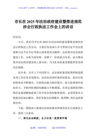 / 市长在2025年法治政府建设暨推进规范涉企行政执法工作会上的讲话