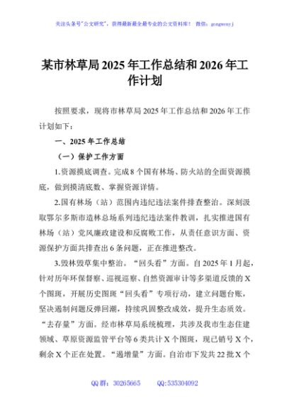 / 某市林草局2025年工作总结和2026年工作计划