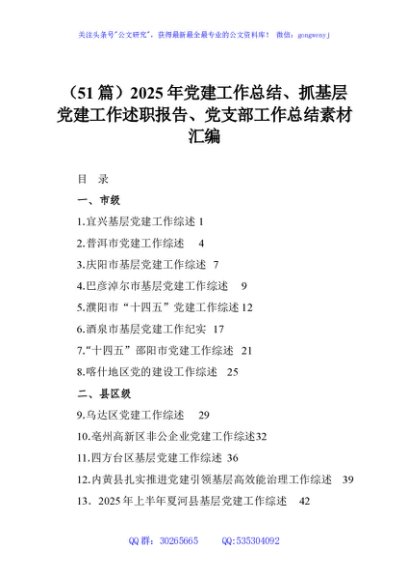 / (51篇)2025年党建工作总结、抓基层党建工作述职报告、党支部工作总结素材汇编