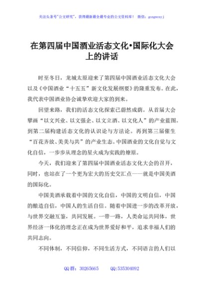 / 在第四届中国酒业活态文化 国际化大会上的讲话