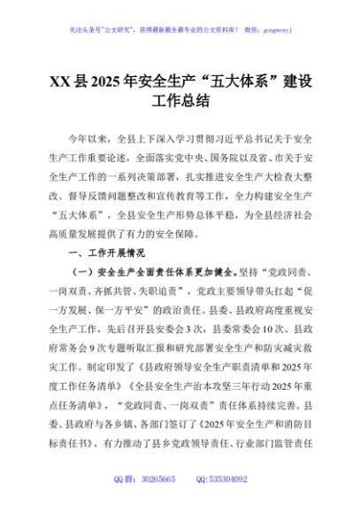 / XX县2025年安全生产“五大体系”建设工作总结