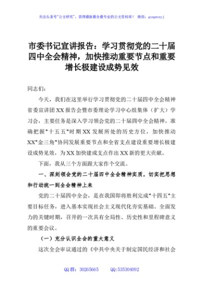 市委书记宣讲报告:学习贯彻党的二十届四中全会精神,加快推动重要节点和重要增长极建设成势见效