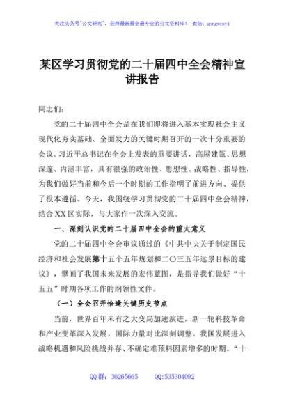 / 某区学习贯彻党的二十届四中全会精神宣讲报告