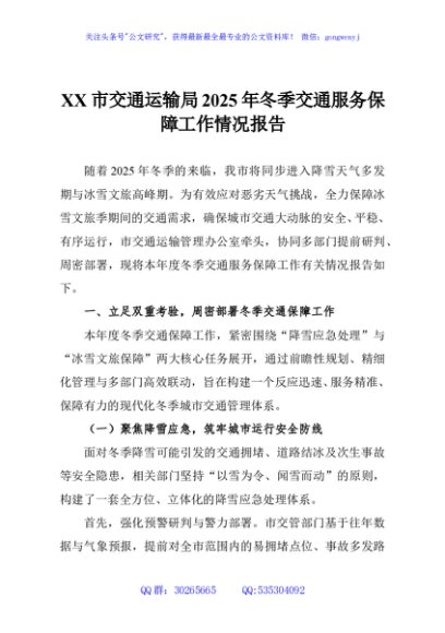 / XX市交通运输局2025年冬季交通服务保障工作情况报告