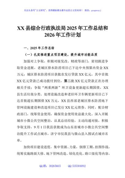 / XX县综合行政执法局2025年工作总结和2026年工作计划