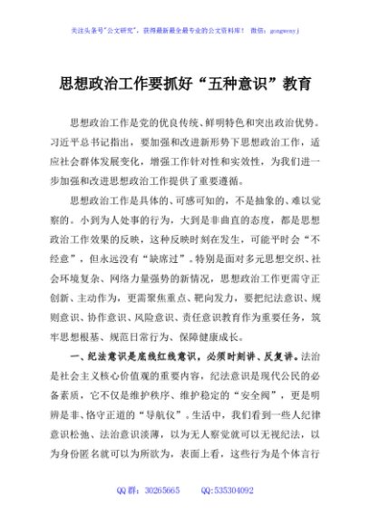 / 思想政治工作要抓好“五种意识”教育