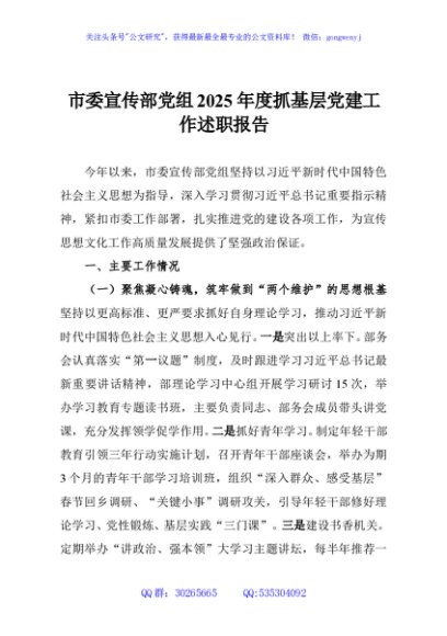 / 市委宣传部党组2025年度抓基层党建工作述职报告