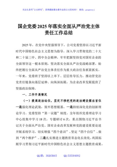 / 国企党委2025年落实全面从严治党主体责任工作总结