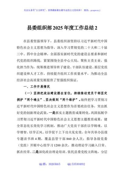 / 县委组织部2025年度工作总结2