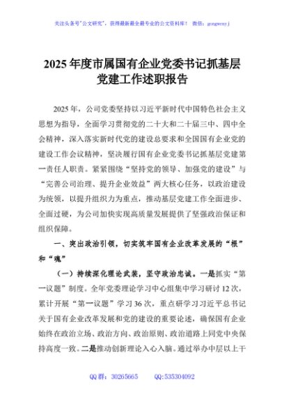 / 2025年度市属国有企业党委书记抓基层党建工作述职报告
