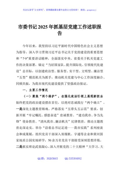 2025年度市国有企业党委书记抓基层党建工作述职报告