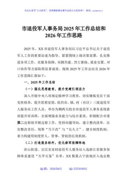 / 市退役军人事务局2025年工作总结和2026年工作思路