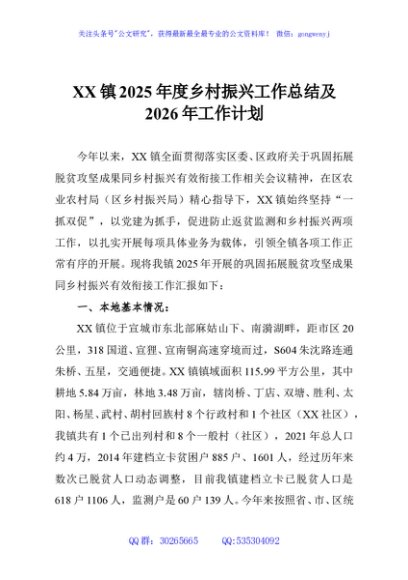 / XX镇2025年度乡村振兴工作总结及2026年工作计划