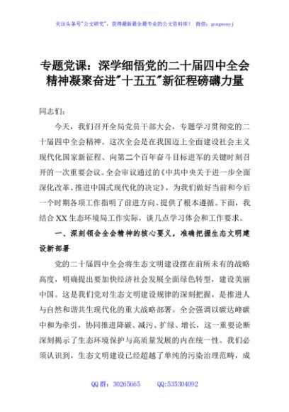 / 专题党课:深学细悟党的二十届四中全会精神,凝聚奋进“十五五”新征程磅礴力量