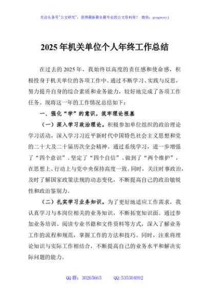 / 2025年机关单位个人年终工作总结