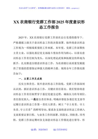/ XX农商银行党群工作部2025年度意识形态工作报告