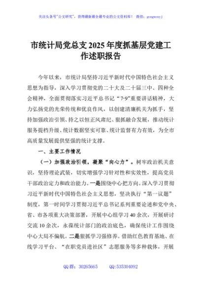 / 市统计局党总支2025年度抓基层党建工作述职报告